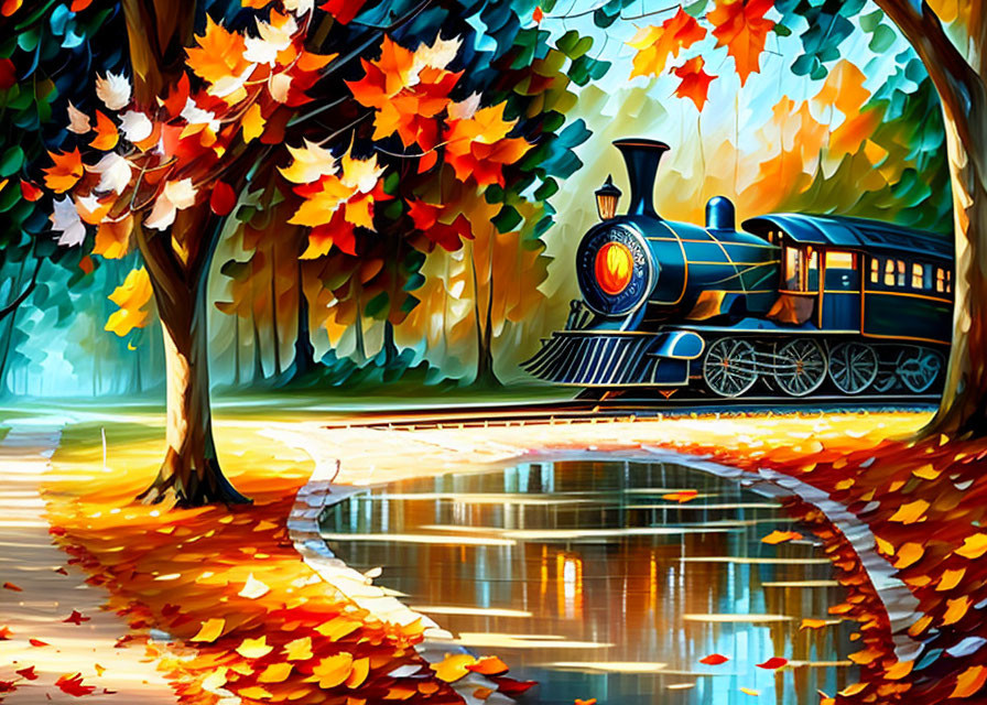 Prompt: A beautiful woman in the image of autumn in a dress made of autumn leaves with a train of autumn beautiful leaves strolls through the autumn park