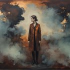 + Prompt:Create a minimalistic expressionistic painting which illustrates this concept: "The truth is not far from us; it is within us." "Solitude can do funny things to the mind . foggy nostalgia, portrait in Burnt umber and salmon gold, smoke and mirrors, patina of, battery acid, art brut, moody, somber, desaturated colors, in the style of Paul Klee, Arthur Rackham Dark and moody oil painting of a woman with piercing black eyes, inspired by the works of John Singer Sargent and Edgar Degas, long shot, realistic texture, dramatic lighting, intricate details on clothing and Magical woman fading tones of melancholy and summer nostalgia, soulful portrait, in burnt umber, plutonium, patina of mercury glass, tea stains, art brut, moody, somber, desaturated colors, in the style of Paul Klee, Banksy, Arthur Rackham, based on Prompt by KRW