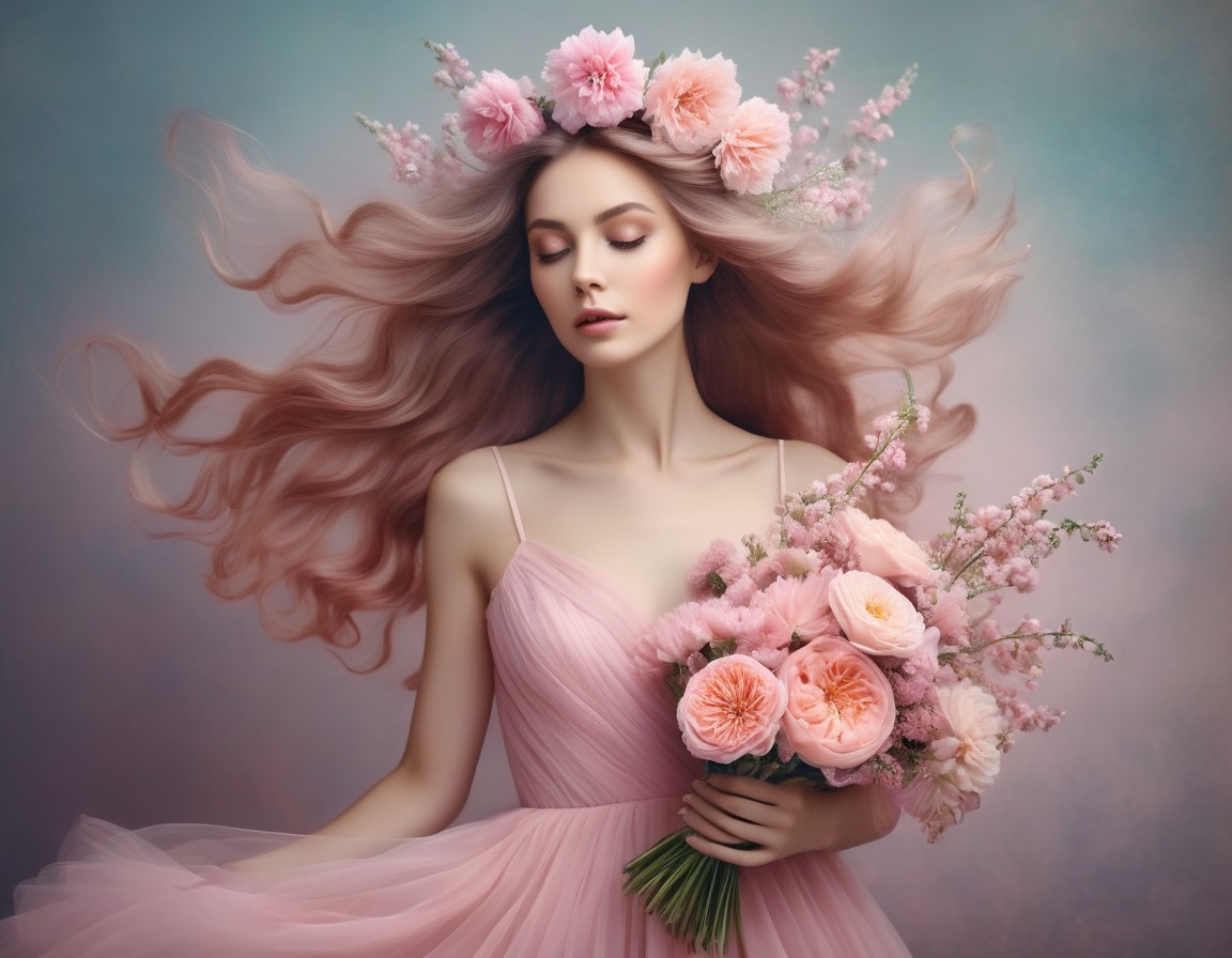 Woman in Pink Dress with Floral Crown and Bouquet