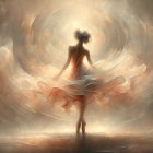 A beautiful, ethereal figure twirls gracefully, enveloped in a flowing, translucent dress. Soft, warm light radiates around her, creating a dreamy, swirling atmosphere.