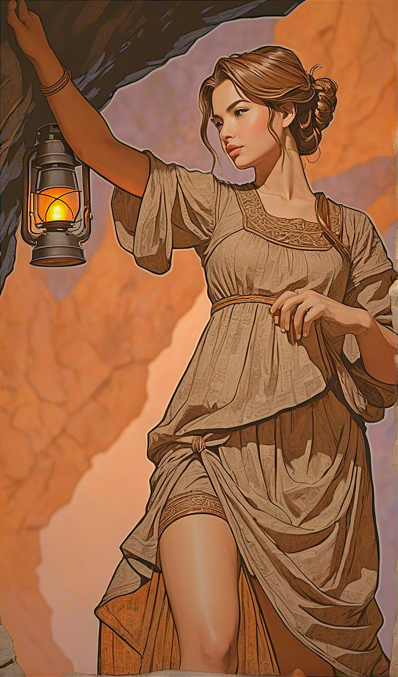 Prompt: Dethereal portraiture, stylized lineage illustration 1.5, Stylized woodblock print, plasticity 1.6, stacked-up perspective, browned outlined hairstyle, blotting, overspray of watercolor paint, stylized Comic book art merged with pop art and storybook illustration, Handsome female teenage adventurer in a stone cave lifting up a glowing lantern, intricate textured walls, 3 point lighting, maximalism, cel-shaded, multi-layered eyes,fine crackles in long flowing 1800s dress, overspray of paint ,1970s adult comic art style, high detail, soft-focus, reminiscent of erotic art, 135mm photography merged with gouache painting by noma bliss. Geometrical composition, soft eroticism, fantasy, cinematic lighting, triadic color scheme beige red ochre, beautiful view, stylized, back-lit, gouache painting reference, stylized Portraiture with stacked-up perspective by Enoch Bolles, colored ink, hues by Georgia O'Keeffe, reminiscent of classic comic book art, textured, smooth, post-impressionist layers of colored textured paint, tranquil, three-point lighting, reflections, contouring bold strokes, plasticity, dramatic lighting, style of Overton Loyd, dreamy blurred aura, warm diffused lighting, misty, delicate shades of red and pale orange, precise Gelsculpt, Novelty architecture, intricate soft pastel color palette, peaceful, only curves, hatching, tessellated style, muscular, attractive, vector 9:5, misty background, raytraced shadows, dark, 135 mm photography, ominous atmosphere, reminiscent of Overton Loyd, unique aesthetic, otherworldly, high detail, brushed textures, simplistic style, mysterious storybook illustration art by Keith haring, tints of freda people and Susan Seddon Boulet, 1970s advertising art merged with Renaissance portrait, dyed,