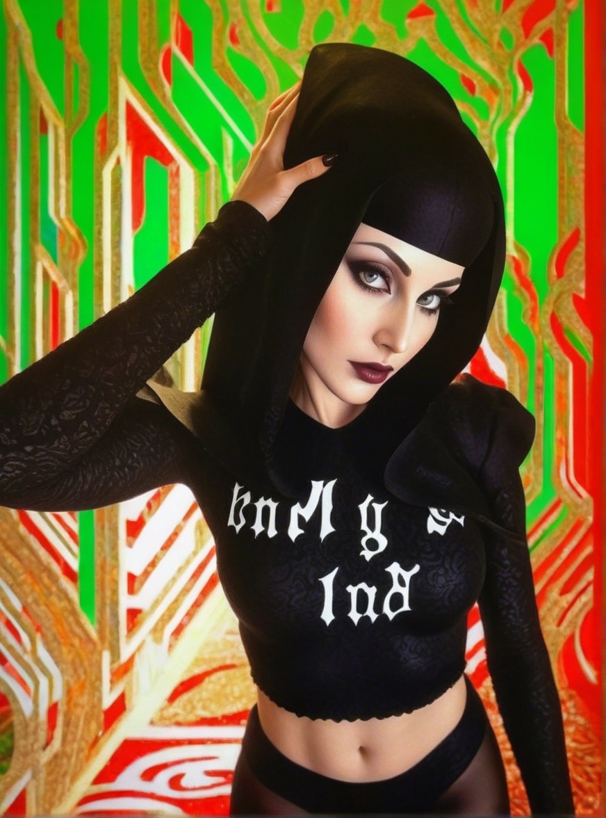 + Prompt:Renaissance portrait, hatching texture, full-width paper cut, beautiful scenery, a beautiful serene Gothic woman, extremely detailed, beautiful, crisp quality, hdr, 64K, paper art, dark fantasy envisioned by Virgil Finlay, infused with a dark Gothic twist from top to bottom, abstract and coherent lineage style, with fauvistic elements, employing ambient occlusion 1.5 for depth. Utilize a wet-on-wet technique for a textured look, incorporating geometrical shapes in a layered, tesselated manner. Infuse stippled details with a baroque flair, and cel-shaded urban elements in a fantastical setting. Create a blend of melting hues and peeling paint for a neon-lit appearance, influenced by pre-Raphaelite art. Opt for a triadic color scheme of yellow, green, and red, complemented by burnt orange and sepia tones, detailed linework and high rendering of auburn, sienna, and burnt orange shades, emphasizing great depth and scale. Implement 3D effects for luminous plasticity, merging green aquatint with watercolor extrusion for a unique texture. Include rim lighting and subtle hints of grunge and soft eroticism, using a splash ink technique with soft edges. Blend retrofuturistic themes with a panavision aesthetic, integrating folded paper references for depth. Infuse American Gothic influences, adding weathered textures for a vintage feel and an ethereal vibe. Feature a beautiful woman's face in an Arcane GTNR style using watercolor and ink techniques. Enhance the image with HDR and VFX-inspired elements, incorporating auracore,high coloring 1.9, traumacore 1.2, foampunk 1.4, saturated colors 1.7, plasticity 1.6, luminosity 1.3, brightness 1.4, inkpunk 1.8, overall stylized lineage drawing