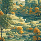 Tranquil Autumn Landscape with Vibrant Foliage and Stream