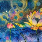 Vibrant Floral Arrangements in Blue Vases with Geometry