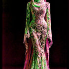 Prompt: Strange Woman Spirit, a colorful and abstract scene with vibrant textures and patterns resembling an otherworldly dream character with mosaic and stained glass elements, Daniel Merriam style