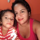 A smiling mother and her young child pose closely for a selfie against a vibrant pink background adorned with colorful music notes. Both have joyful expressions, radiating warmth and love.