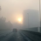 A tranquil landscape at dawn, featuring a softly glowing sun rising behind misty hills. Two trees stand silhouetted, while a winding path leads through vibrant wildflowers.