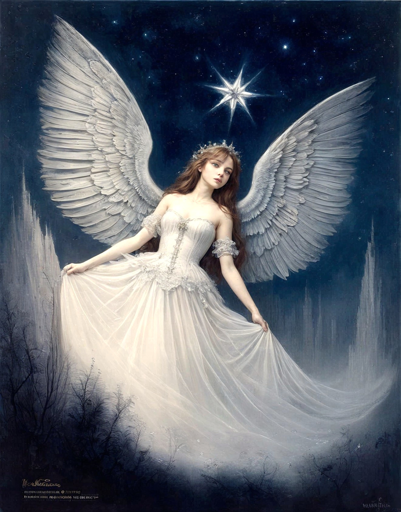 Artwork of a star ascending against a vivid celestial backdrop, showcasing intricate details, vibrant colors, and a mystical, otherworldly atmosphere.