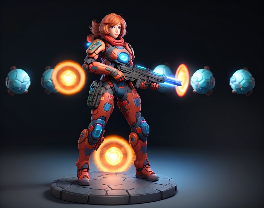 Futuristic Female Soldier in High-Tech Armor