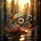 A shiny, swirling can spins in a stream, creating splashes of water around it. The vibrant colors of the can reflect the golden sunlight filtering through the trees, adding a magical touch.