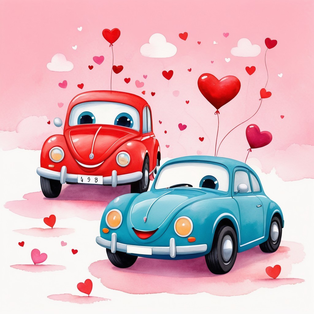 More about Adorable Cartoon Cars in a Heartfelt Scene (Repetition: 126w)