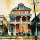 This charming Victorian house features pink siding, intricate woodwork, and a steeply pitched roof. Surrounded by lush greenery and a decorative fence, it exudes classic elegance and warmth.