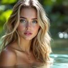 The image features a stylish woman with short, wavy hair. She poses elegantly in a colorful, geometric-patterned dress against a bright, modern backdrop, exuding confidence and grace.