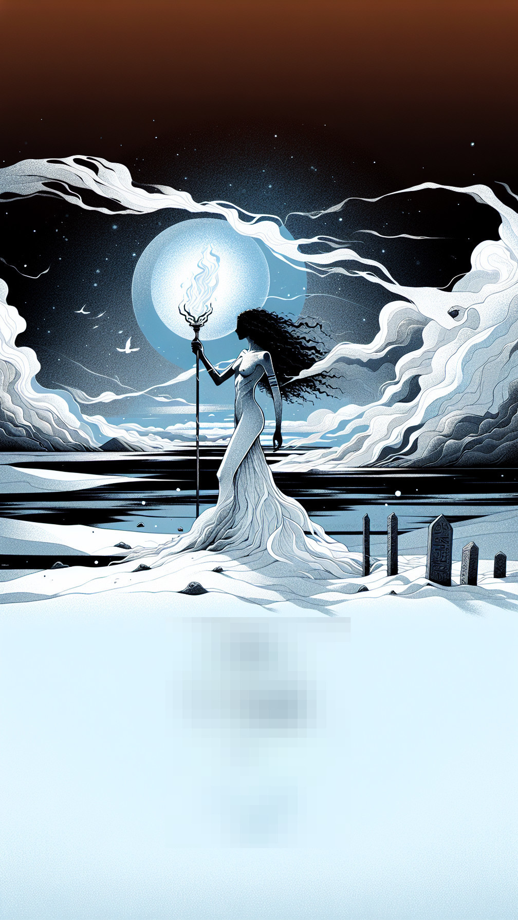 SAFE FOR WORK, PROMETHEA GODDESS OF MAGIC, RED SHASH HOLDING A FLAMING GLOWING CADUCEUS REVACHOL FOREVER DISCO ELYSIUM SAFE-FOR-WORK ENTROPY THE PALE GHOSTLY WHITE DUST ENTROPONETIC EVENT PROMETHEA INK WASH SPLATTER SOFT GHOSTLY ALMOST NO COLOR SOFT WHITEOUT SUPER PALE ORANGE DARK GRAY SILVER STREAKS PROMINENCE ENTROPIC FOG An uproar of matter *rising* into the pale. Rolling. Evaporating an ink painting in the style of graffiti with bold lines and shapes, strong black strokes, TINY blue, and expressive facial features against a SOFT background. The work incorporates ink wash techniques and calligraphic elements. Imagine Promethea, a magic goddess with an extraordinary blend of Irish and Egyptian heritage, standing powerfully in a pose of commanding grace. Her skin glows like burnished bronze under the sun, with an undertone that hints at her Celtic lineage More sketched watercolor Cold desolate, gloomy dreamy scene . Emotional . HOPE. Llight and soft light whitish colors