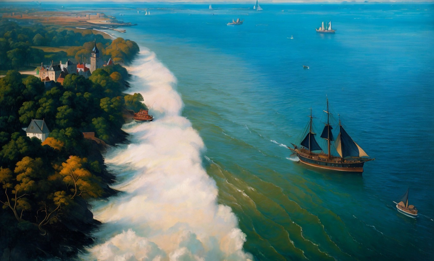 I grew up very close to Sandy Hook and the New Jersey bayshore explored and mapped by Henry Hudson in 1609 just before sailing the Half Moon across New York Harbor to Manhattan. This painting is adapted from done footage of modern Sandy Hook to depict the same shores as they might have appeared during Hudson's visit.