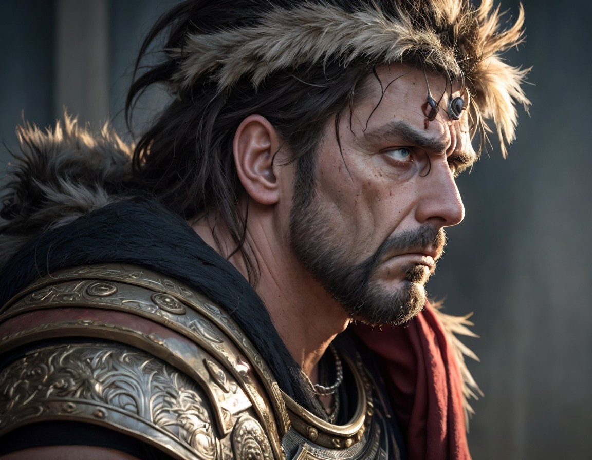 a determined and brutal Roman warlord awakened from his lethargy after a battle. Sitting on his horse from a high mountain, he sees the modern metropolis at the bottom of the mountain and his eyes show great surprise