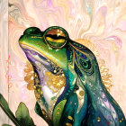 patchwork by Paul Klee, Gustav Klimt, Jacek Yerka, Arthur Rackham, Hieronymus Bosch, and Catherine Welz-Stein, Amidst the multitude of lightning strikes hitting the ground, a mysterious female figure approaches. details of her face, and her eyes glow with a bright blue light light. Her long henna hair is electrified and spread out like an open fan. The woman is dressed in a sheer cloak adorned with intricate Art Nouveau patterns that glow, creating an effect of a mystical aura. Her violet-gold ornamental wings, resembling those of a hummingbird, are spread out behind her, featuring small cross shaped lightning rods at the edges. Electric discharges run across her body, causing it to shimmer. The visual style combines elements of pop surrealism with bright colors and playful forms, as well as the elegant lines and organic shapes of Art Nouveau. The background is contrasting: leaden clouds in the sky are continuously interrupted by a bright cross shpe stars resembling thin, branching veins that penetrate the ochre-colored desert plain, where in places the earth has turned into molten glass in the shape of flowers. a fusion of pop surrealism and Art Nouveau style. Acrylic patination, Wood patina, Paris patina, imitation effects: gilding, silvering, blued steel, old copper blackening, shade of sanguine, Unreal Engine, chiaroscuro, whimsical contrast, high detail, and intricate patterns.