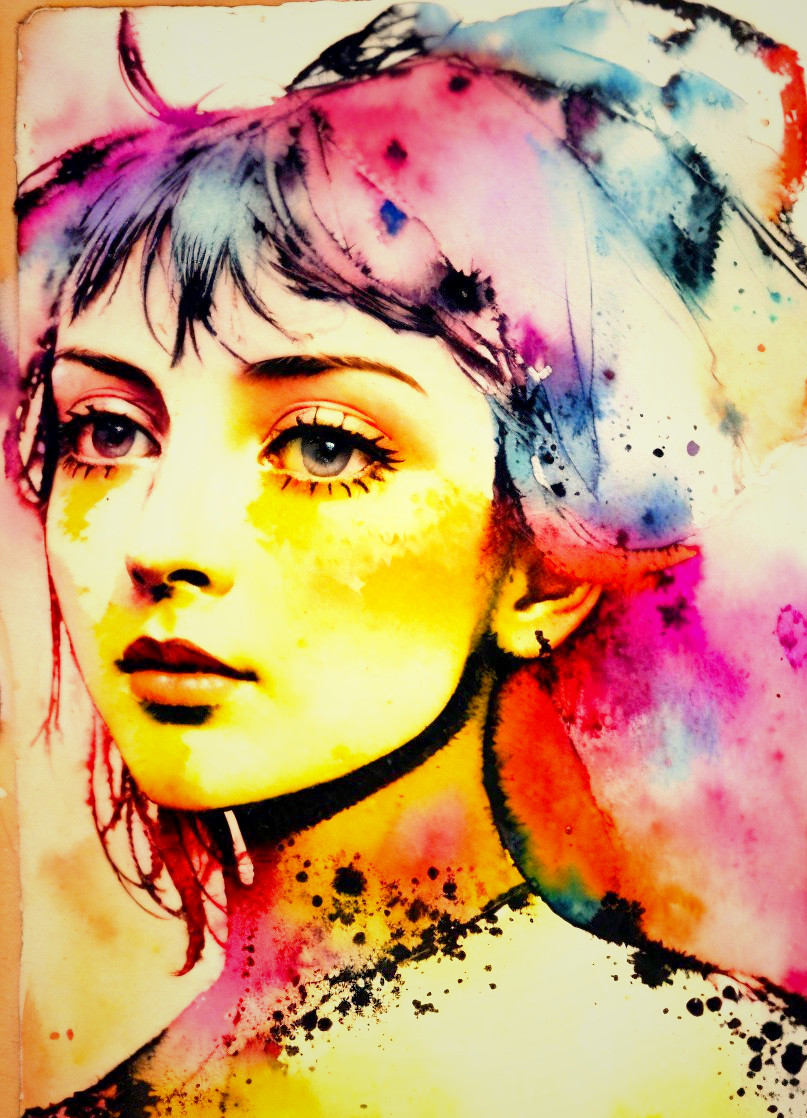 Low key lightning, paint drips, colorful splashes,3D image effects