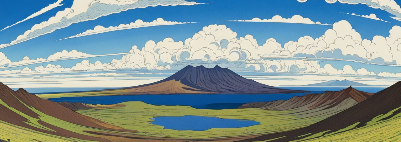 Title : "Volcano Banner ( Bilibin Landscape #11 )" ©2024 A.J. Jones.