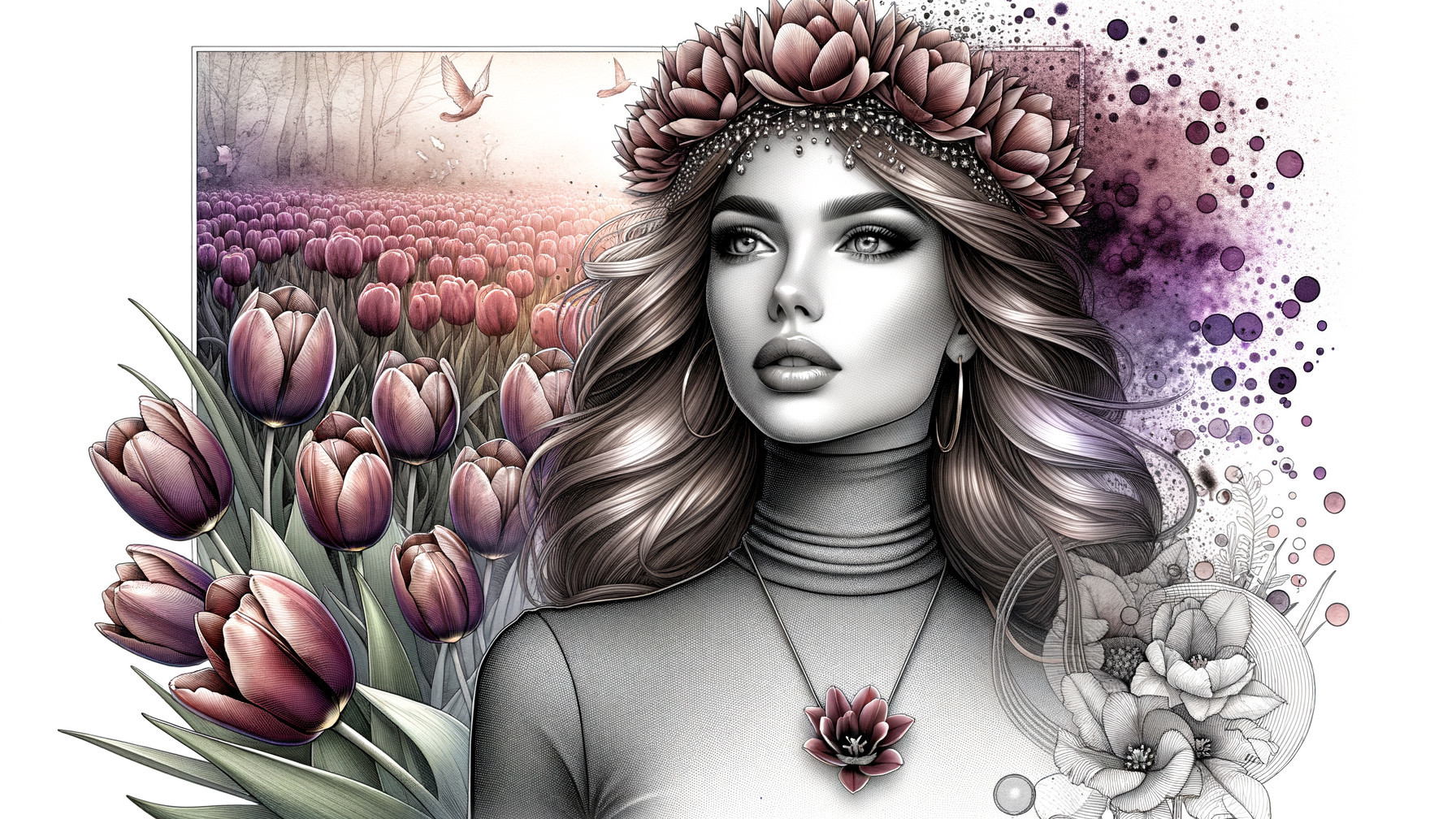 More about My Tulip series. Grayscale Elegance with Floral Crown