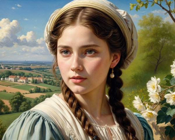 A serene landscape with a stone bridge over a calm river, surrounded by trees in autumn colors under a clear sky.