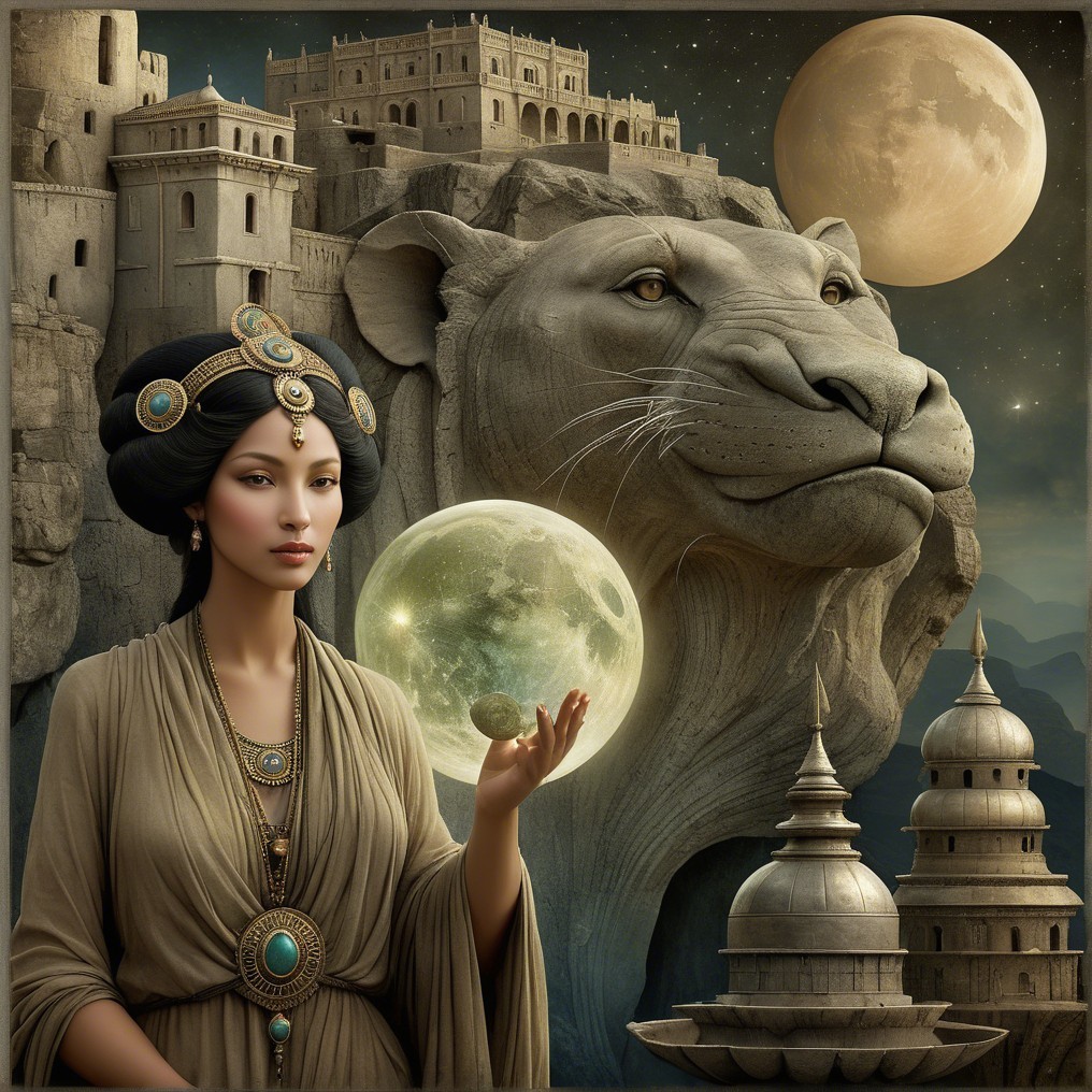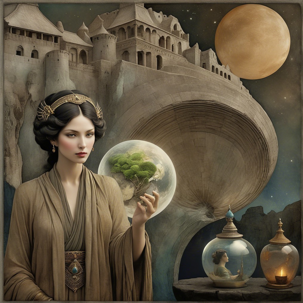 Close up, Ancient cities, ancient tales. Ancient spirits Beautiful exotic woman. Arthur in the style of Alexander Jansson. by Catrin Welz-Stein, Michael Parkes