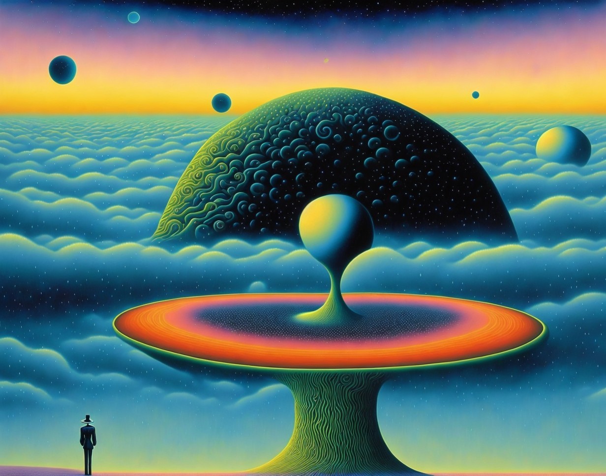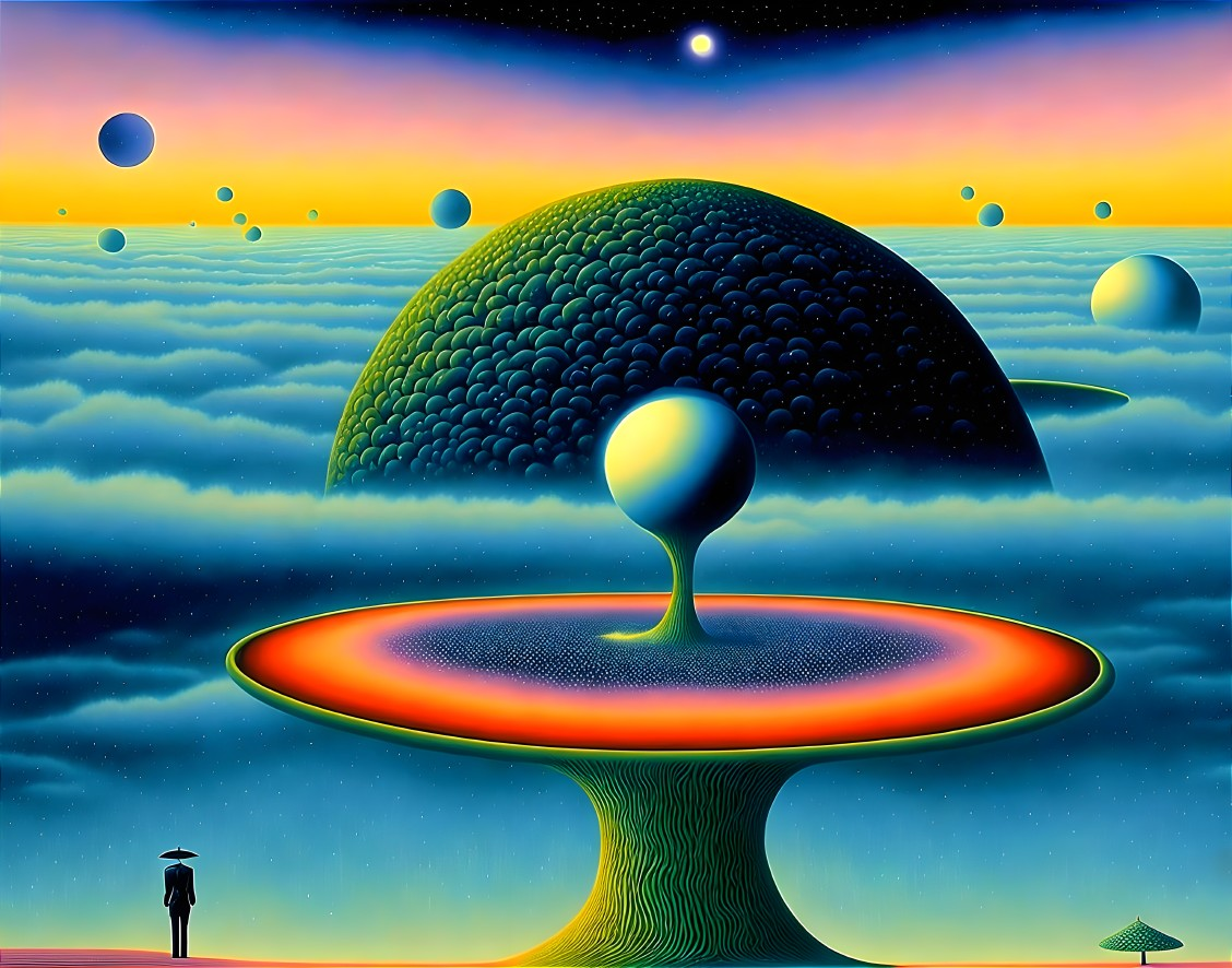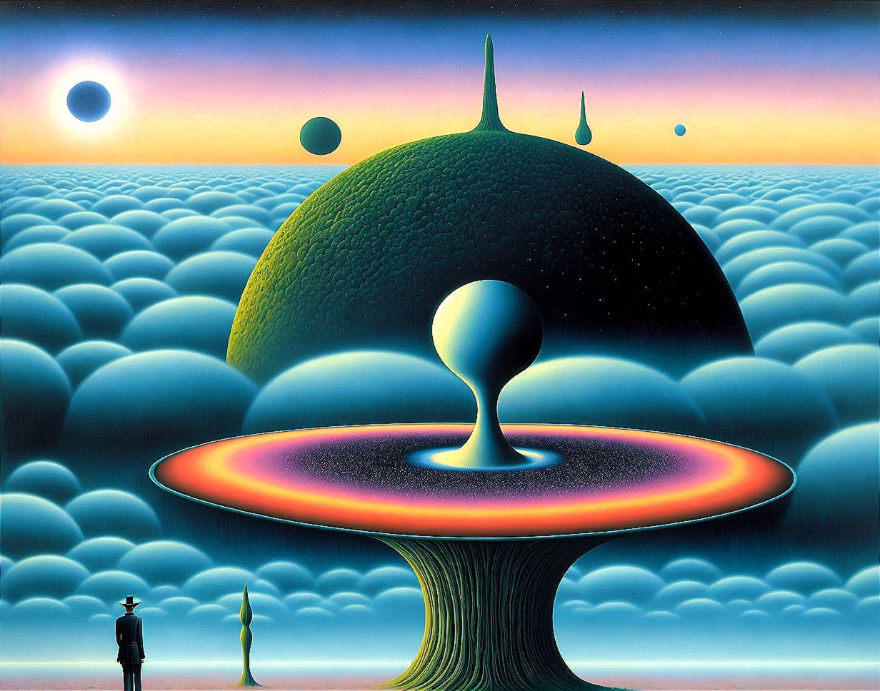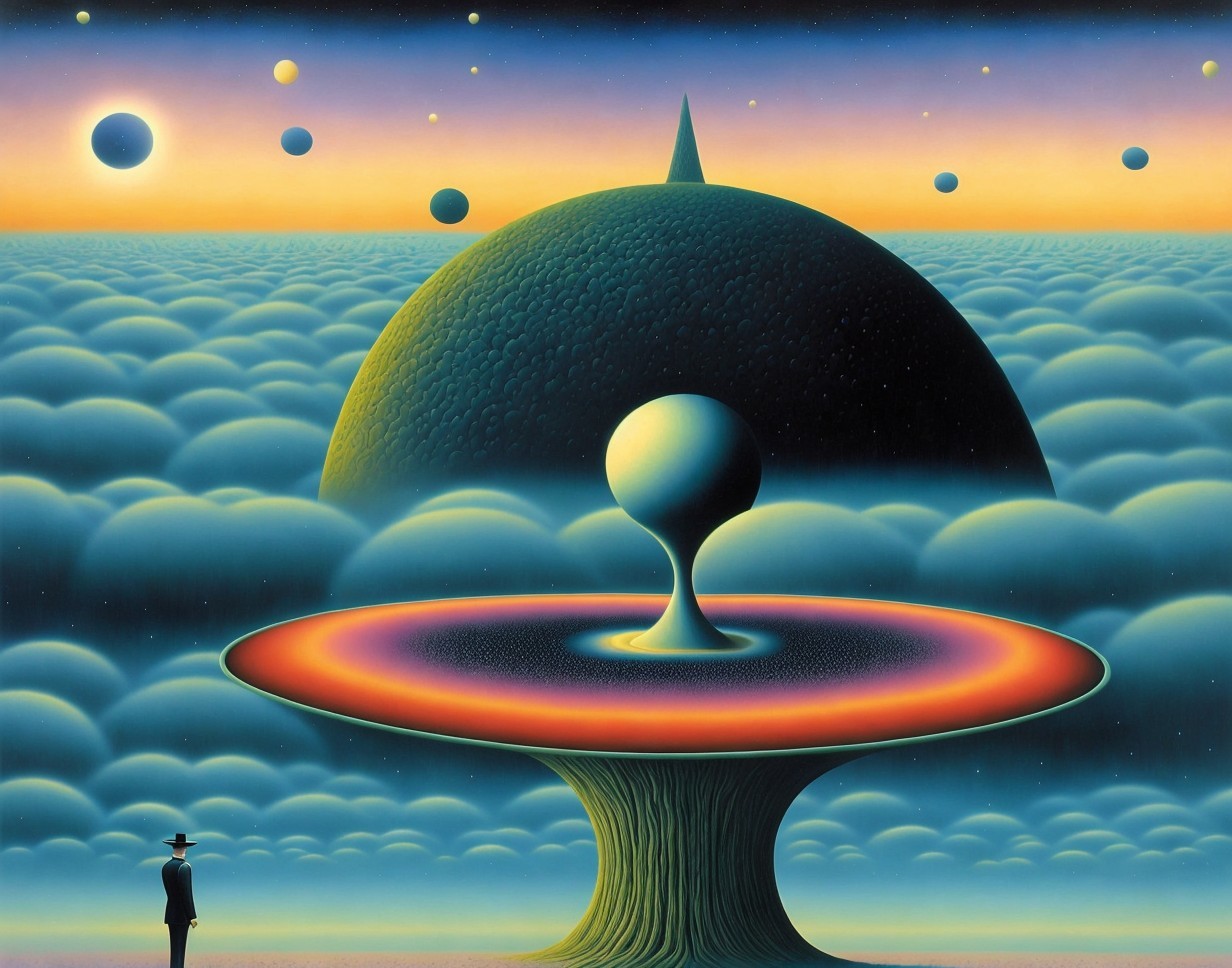 Surreal Landscape with Abstract Mountains and Mushroom Structure