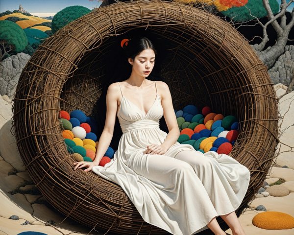 Prompt: (A masterpiece of unparalleled excellence), (("A vibrant, surreal landscape featuring a large, abstract face surrounded by colorful buildings, trees, and celestial bodies. The scene blends fantasy elements with intricate patterns and vivid colors". Colorful complex stipple texture)), Inspired by the style illustrations of Gustav Klimt, Nicoletta Ceccoli, Catrin Welz-Stein, Dee Nickerson, Luis Royo. (Full Size image).