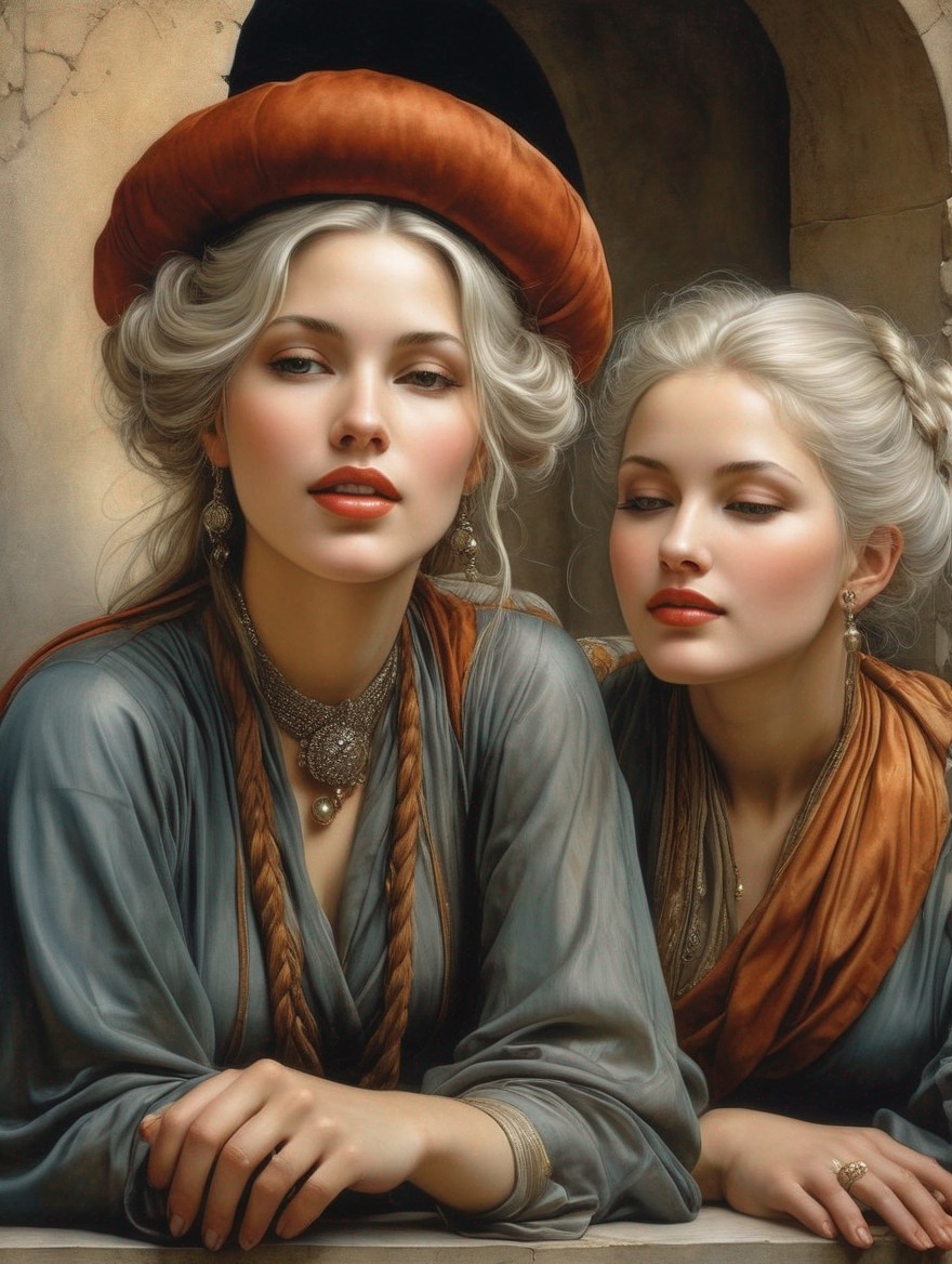 A woman in an elegant dress and headscarf gazes intently while holding a glowing orb showing a castle.
