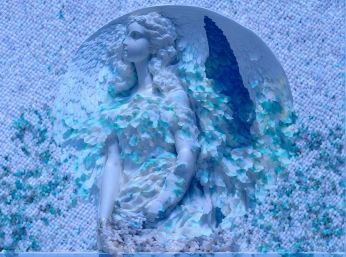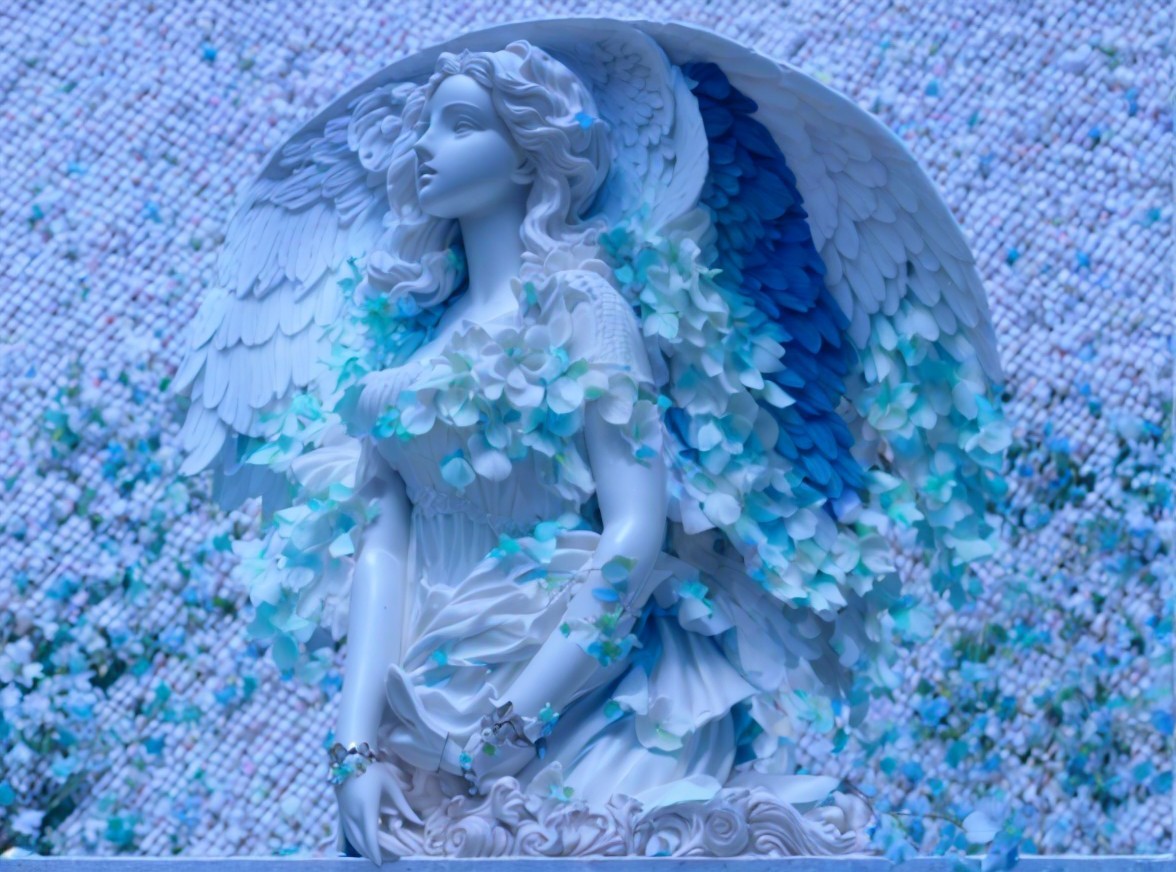 Serene Angel Sculpture with Detailed Wings and Flowers