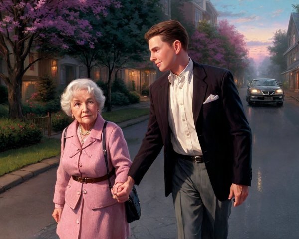 A vibrant purple vintage car is parked in front of beautifully carved wooden doors, draped with lush, ripe grapes and green vines, creating a picturesque and charming scene.