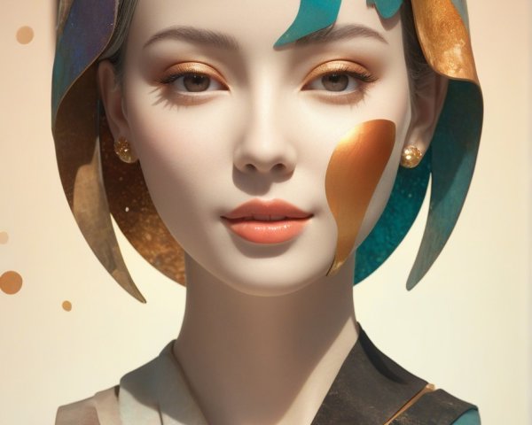 + Prompt:lithography, watercolor and ink painture featuring a stylized and otherworldly portrait with a juvenile essence. The art style is stylized, multi-layered, hues, airy, easy, soft coloring, remiscent of watercolor and ink by arlie opal, 3d effects, parallax occlusion, bokeh, debeh, simpistic,liminal, joyful, dark fantasy, line-art details, overspray of paint, squiggly, anisotropic filtering 1.3, raytraced shadows, sfumato,rigid, otherwoldly ambiance, mysterious female face, intense gaze, intricate flowing hair illusion, stippled, blotted, tesselated, cel-shaded, moonlight silhouette, raytraced shadows, high contrast lighting, digital painting, maximalist style,exuding a delicate yet mysterious aura. Her face is detailed with multi-layered eyes, vintage and Edwardian styles, including a fur stole and a hypnotic gaze, abstract, artistic, magical ,zentangle, Gold filaments, aquarel extrusion, luminous patterns, glittering, appealing, mesmeric, warm color palette featuring shades of pale blue and warm beige, pointillism details, evoking pop-art. The lighting is soft and diffused, enhancing the magical and mystical ambiance, overall composition is by Georgia O'Keeffe and Arlie Opal, combining elements of casual line and wash sketch with a foampunk twist.The artwork is rendered in UHD HDR using Octane render, emphasizing a cinematic and comic book art style. The thinned textures add depth, while the stippled effect creates a coherent and intricate look, blending elements of fantasy heroines in the style of Overton Loyd and Ed Binkley. Various rendering techniques such as parallax occlusion, ambient occlusion, and raytraced shadows enrich the visual experience, warm pastel coloring. Precise gelsculpt 64k,soft and intricate brushstrokes, glowing golden light, dramatic lighting, dreamy atmosphere, ethereal textures, delicate and vibrant colour palette, inspired by the styles of René Magritte and man ray, serene 1920s style, floating