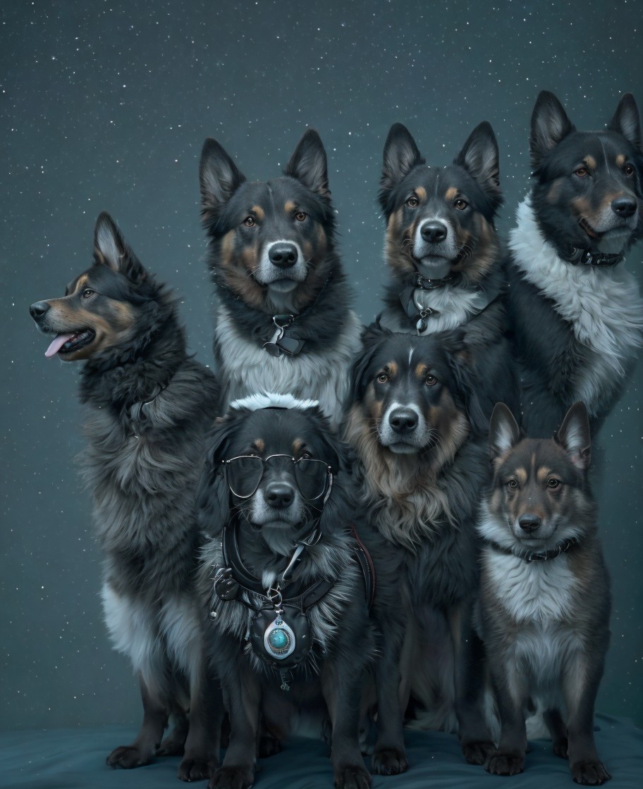 A pile of curious dogs watching who look at them.