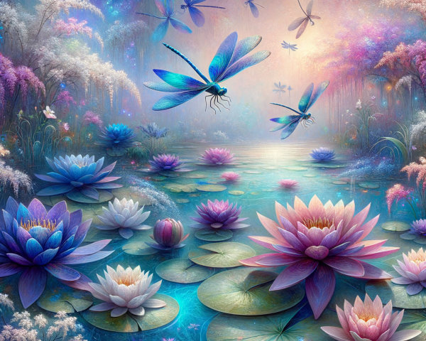 A surreal scene with a figure on a boat under a swirling, dramatic sky reflecting on tranquil waters at sunset.