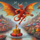 A striking artwork features a serene figure with an abstract splash of orange paint, creating a vivid contrast against a textured gray background, evoking emotion and intrigue.