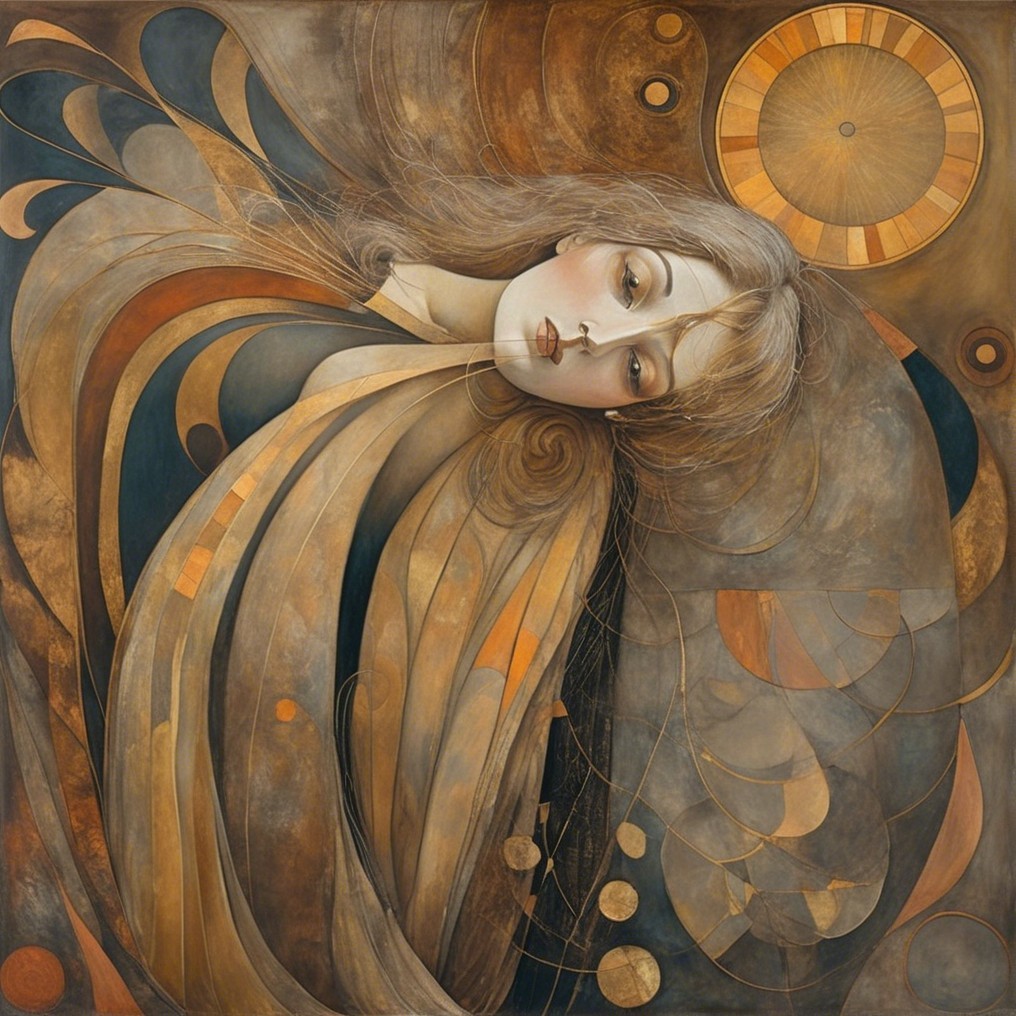 + Prompt:Emerging chrysalis. foggy nostalgia, portrait in Burnt umber and salmon gold, smoke and mirrors, patina of, battery acid, art brut, moody, somber, desaturated colors, in the style of Paul Klee, Arthur Rackham Dark and moody oil painting of a woman with piercing black eyes, inspired by the works of John Singer Sargent and Edgar Degas, long shot, realistic texture, dramatic lighting, intricate details on clothing and Magical woman fading tones of melancholy and summer nostalgia, soulful portrait, in burnt umber, plutonium, patina of mercury glass, tea stains, art brut, moody, somber, desaturated colors, in the style of Paul Klee, Banksy, Arthur Rackham, based on Prompt by KRW
