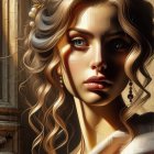 Ethereal Woman in Rosy Gown Amidst Autumn Scene