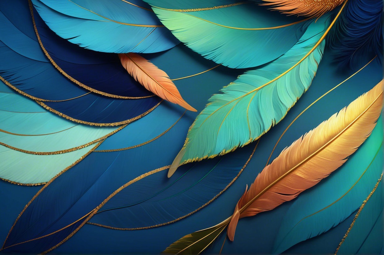 A stunning portrait of a young woman with vibrant, feather-like hair in shades of blue, green, and orange, adorned with a decorative headpiece, exuding a mystical and enchanting vibe.