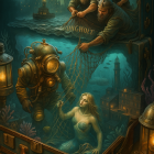 A dramatic scene on a stormy sea depicts a group of rugged fishermen working together to untangle a fishing net, while a woman in a light dress observes the effort intently.