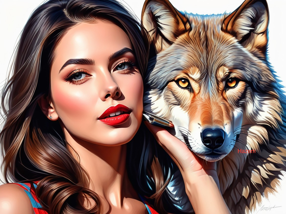 A vibrant and colorful digital painting shows a stunning woman with her hair down, facing the viewer directly. She has captivating dark eyes with a hint of white from her sclera and a subtle shadow underneath, framed by dark eyebrows, long eyelashes, and sparkly eyeshadow. Her nose is narrow and straight, and