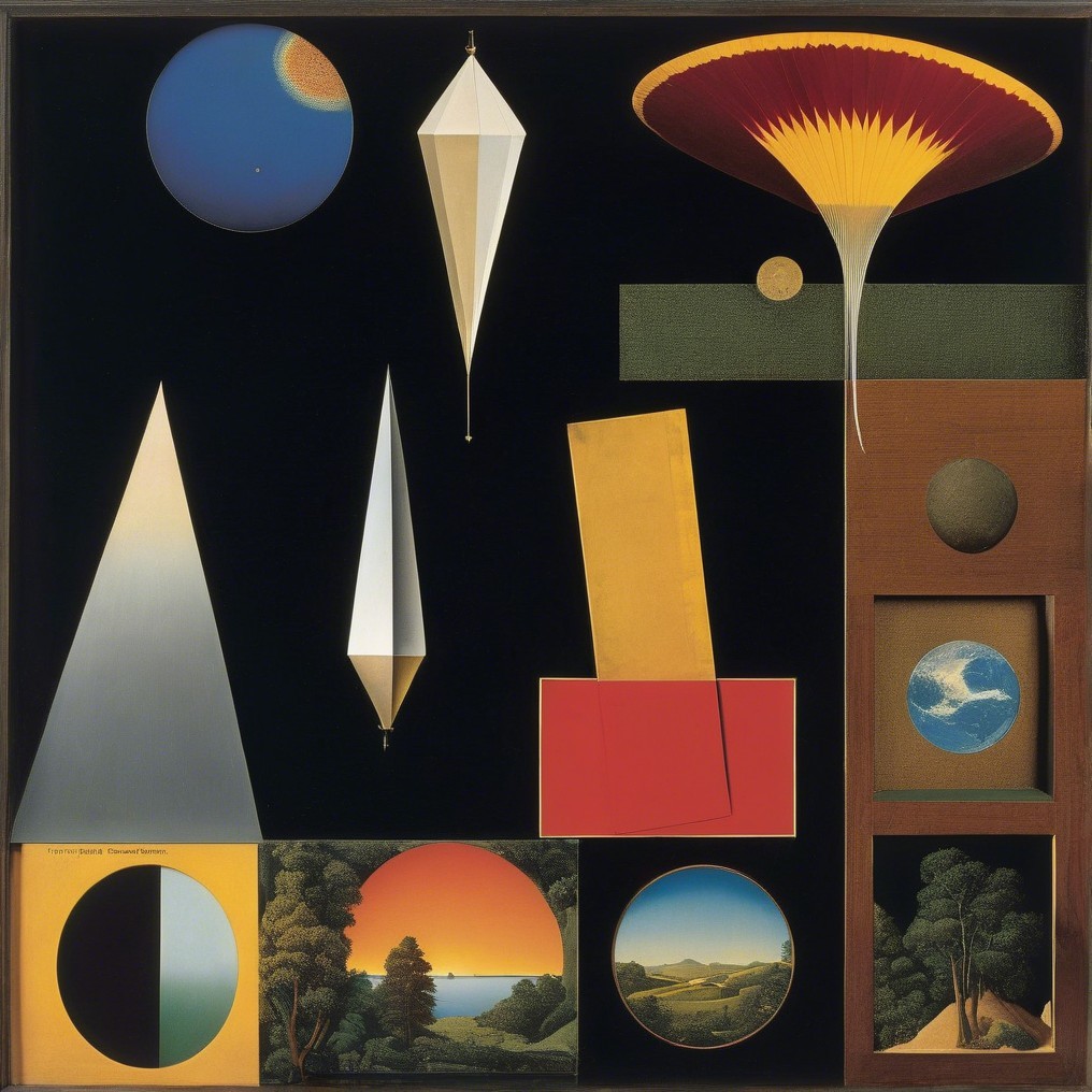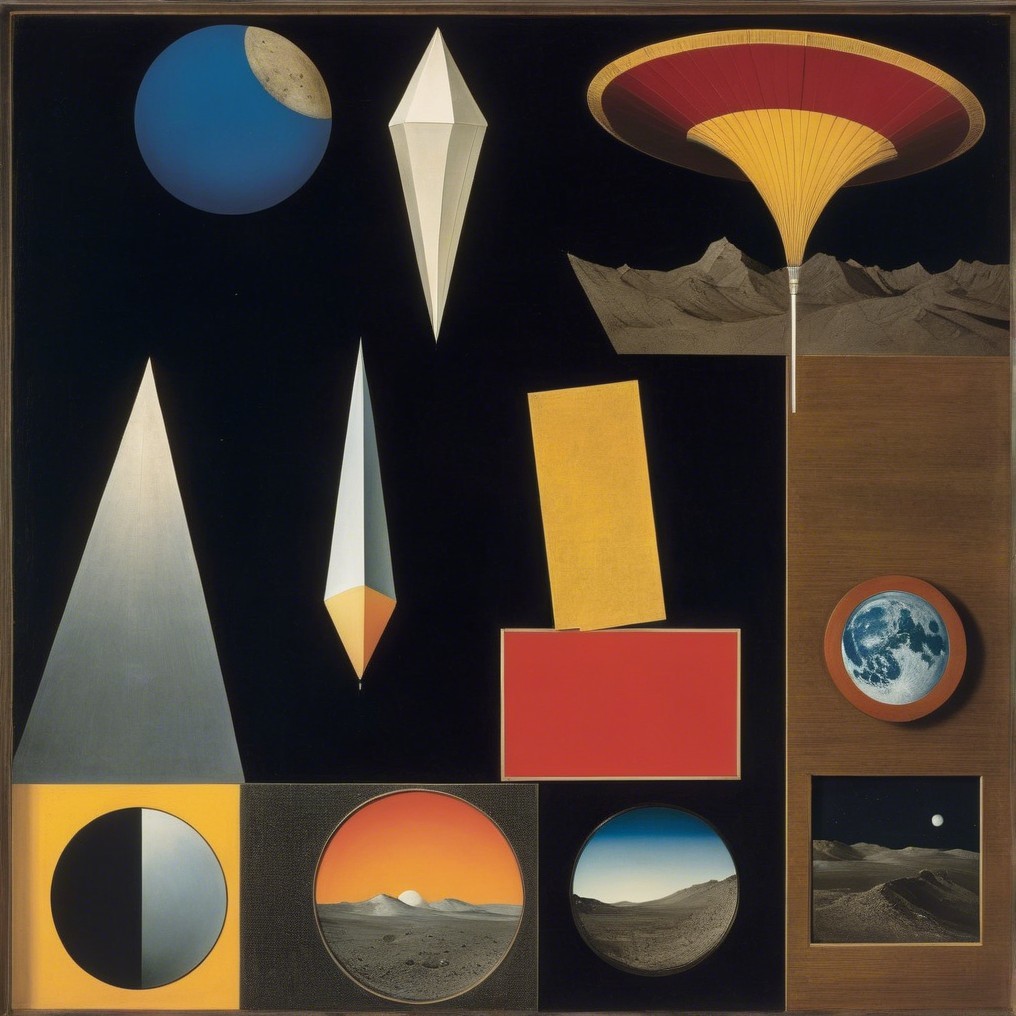 The image features a collage of stylized celestial bodies, spacecraft, and geometric shapes, showcasing a vibrant exploration theme with planets, moons, and futuristic rockets against rich colors.
