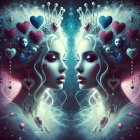 The image features a surreal beauty portrait of a woman with striking makeup, surrounded by vibrant colors and artistic hair adorned with glossy bubbles, creating an otherworldly atmosphere.