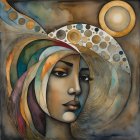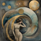 The artwork features a graceful woman in a flowing silver garment, set against a celestial backdrop of swirling clouds and moons, radiating elegance and a dreamlike atmosphere.