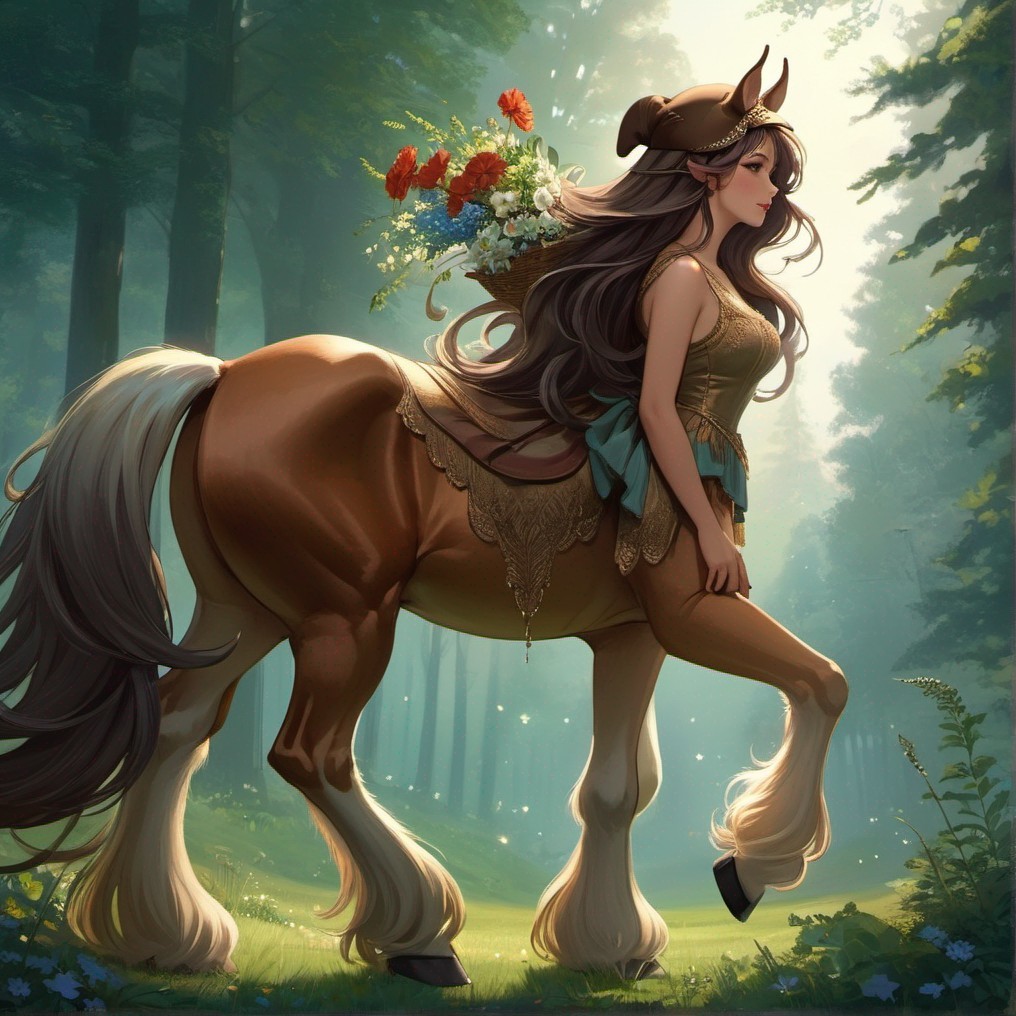 Centaur Woman in Misty Forest Setting