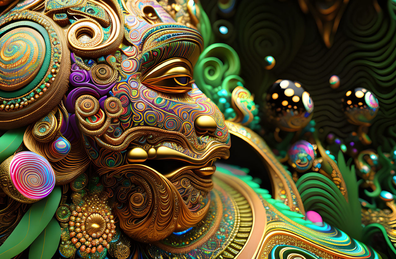 Colorful Surreal Portrait with Fractal Patterns and Textures