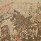 A serene forest scene captures a girl resting among colorful flowers and paper foxes, surrounded by playful origami butterflies, with a friendly fox nearby, all bathed in warm, dappled light.