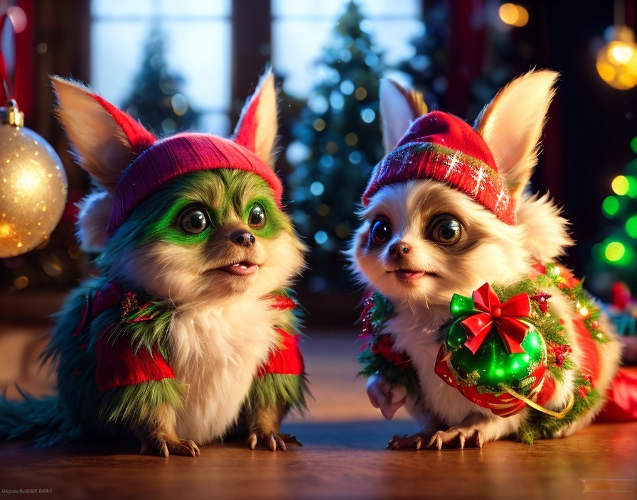 Gremlins have fun with Christmas this year, Gremlins playing with Christmas tree decorations, great view for the viewer