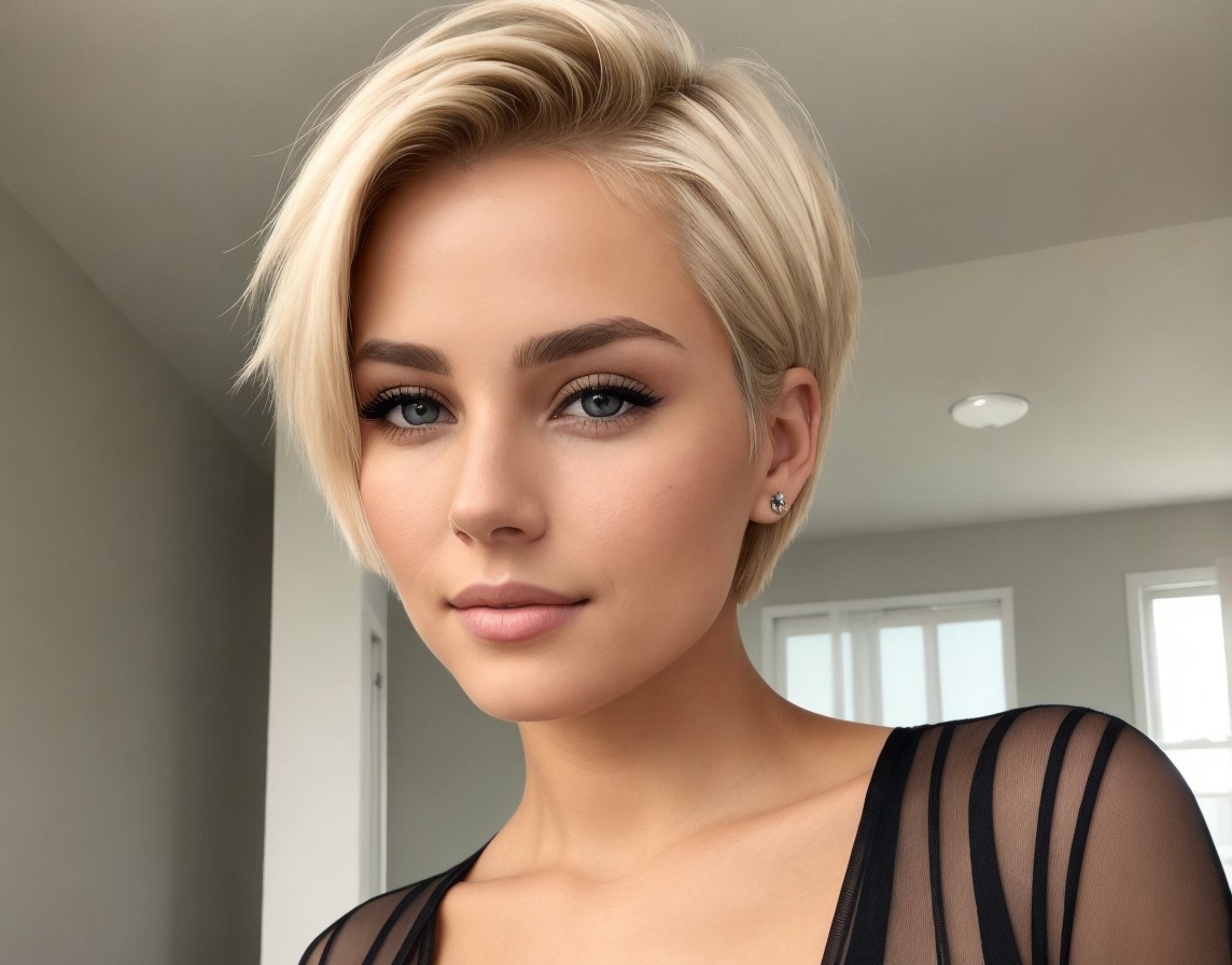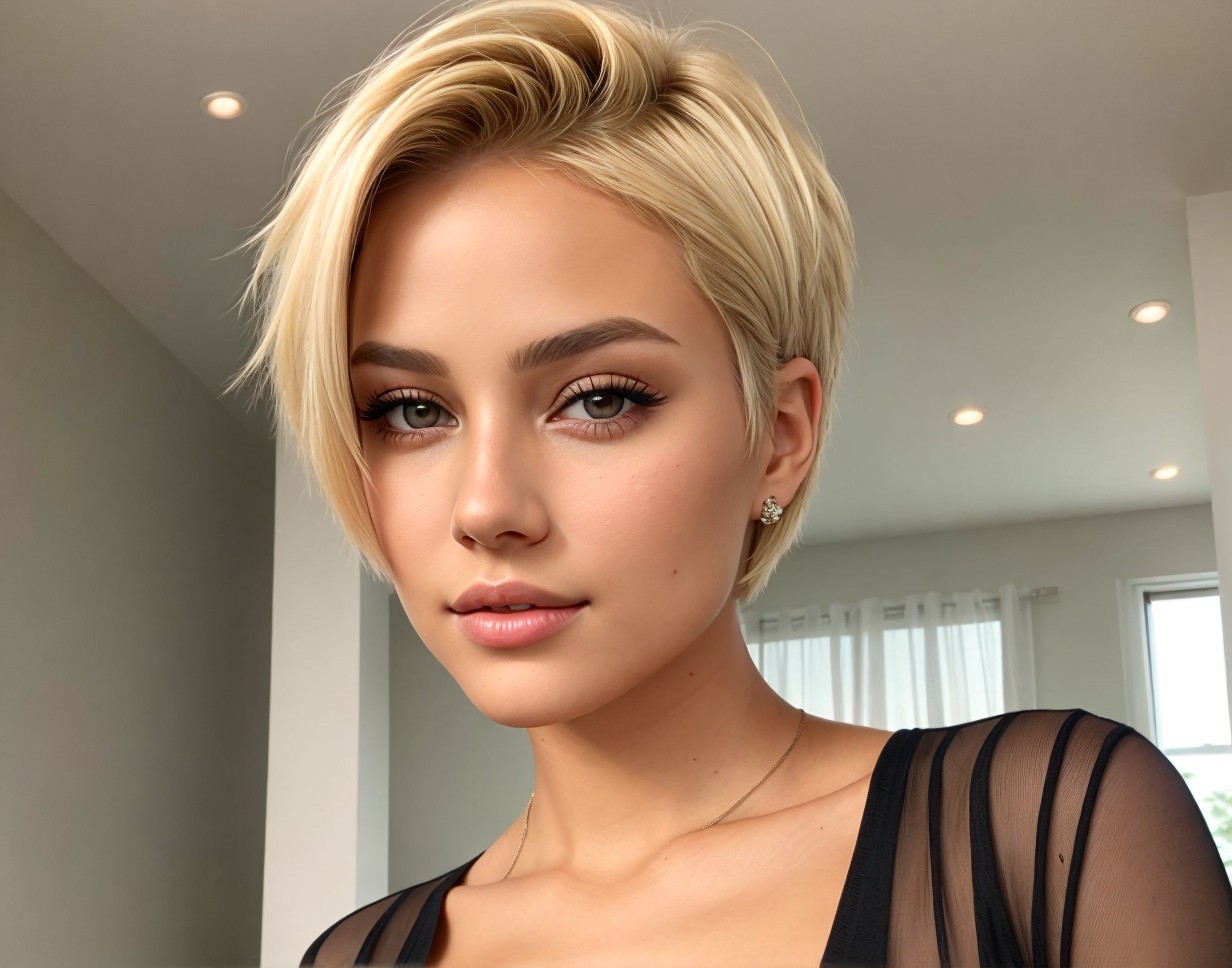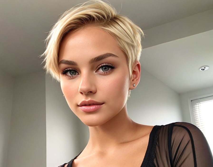Blonde Woman Portrait in Sheer Black Top