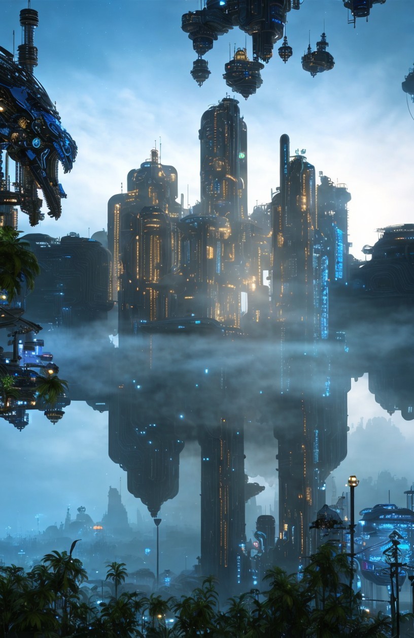 + Prompt:A giant world of circuits, blue theme, hi-tech, sci-fi, extremely detailed intricate wallpaper crisp quality blue Digital