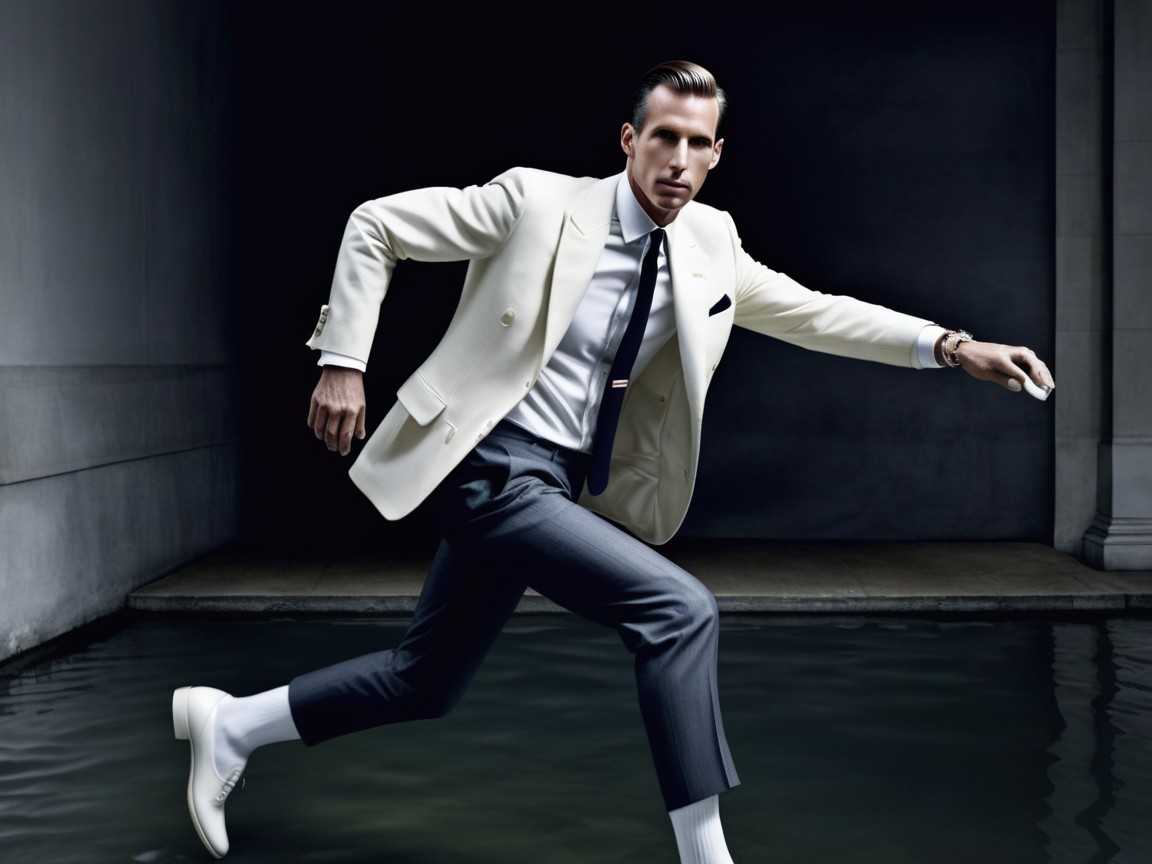A stunning blend of motion blur and intricate details captures the essence of fashion photography. The use of flood light and watercolor techniques creates a vibrant, dynamic masterpiece.